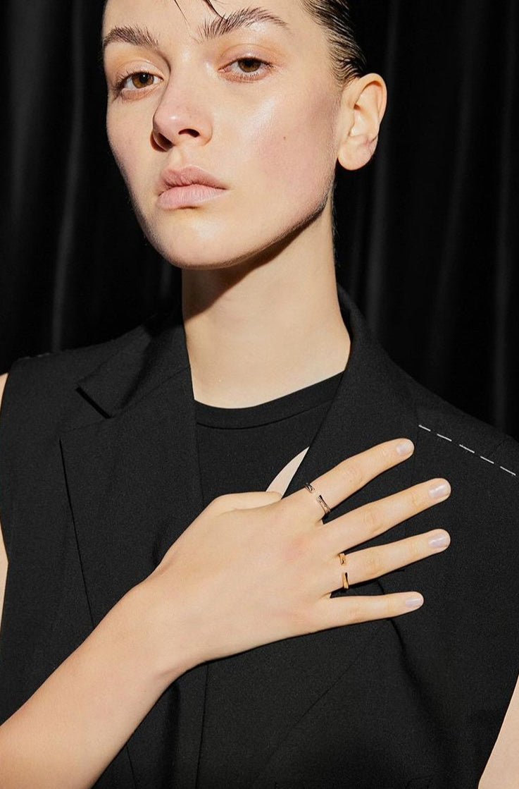 さりげなくキラッと光るデザインで高見えします。指が太いので華奢なリングが似合わないのですが、絶妙な形でスッキリ見えます。とても気に入りました。