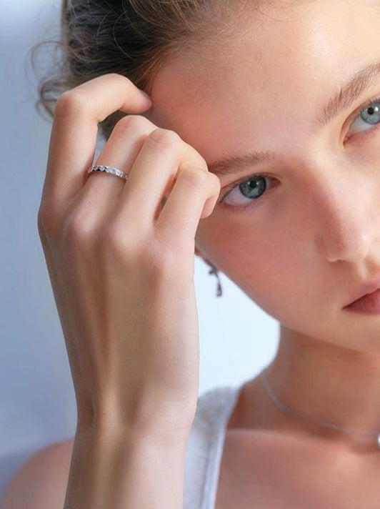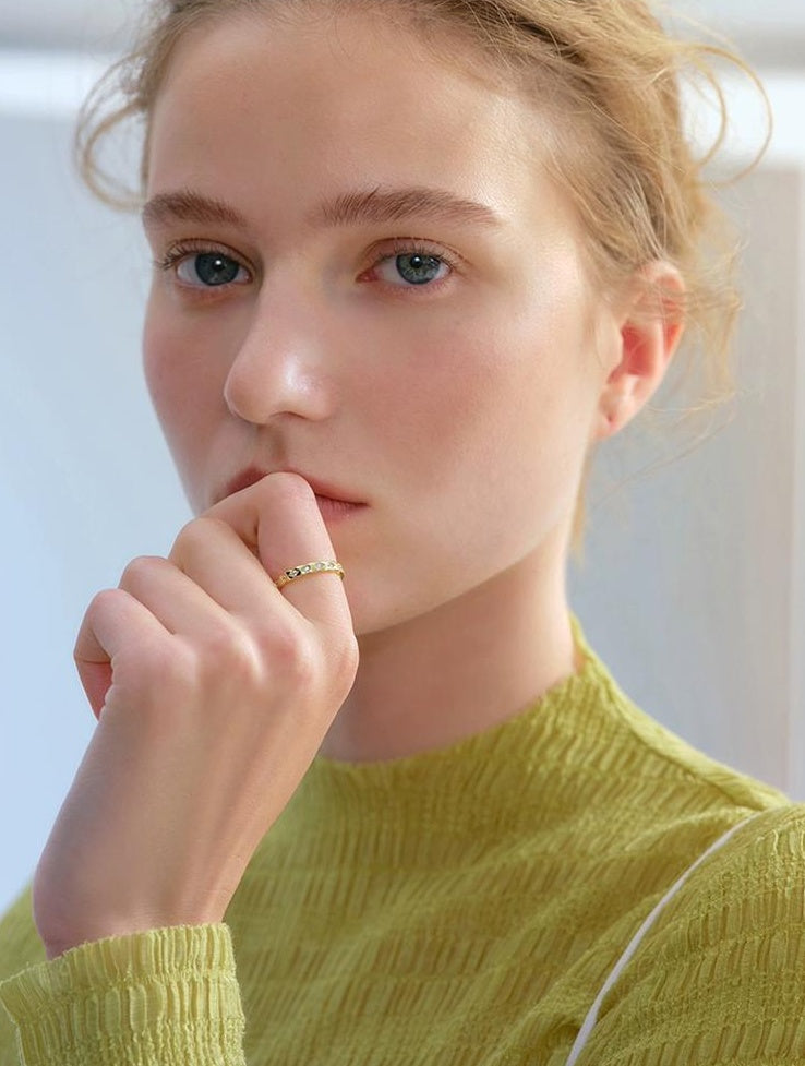さりげなくキラッと光るデザインで高見えします。指が太いので華奢なリングが似合わないのですが、絶妙な形でスッキリ見えます。とても気に入りました。