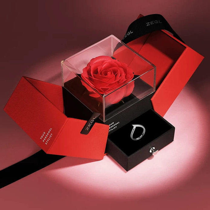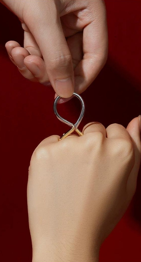 シンプルで洗練されたデザインのジオメトリックカップルリングセット。